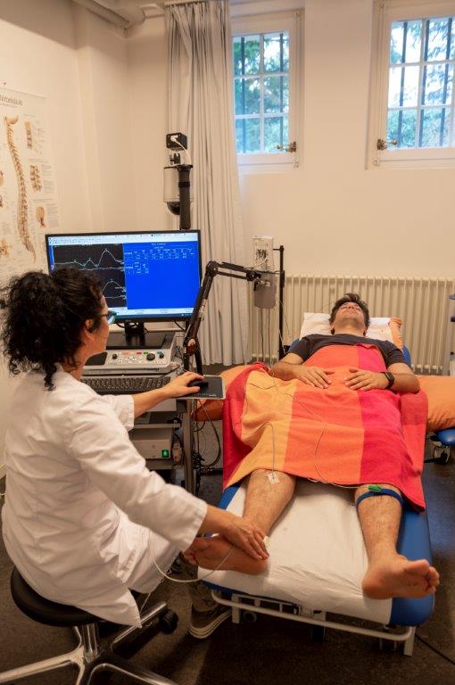 The examination is harmless and not painful. Occasionally, the electrical impulses are experienced as unpleasant. It takes between 10 and 45 minutes in total.
