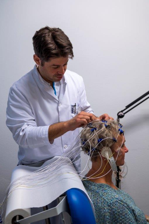 L’électroencéphalographie sert à mesurer et à enregistrer l’activité électrique du cerveau humain (ondes cérébrales) à l’aide de petites électrodes posées sur le scalp. Cet examen est indolore et non invasif. Un EEG est utilisé afin d’évaluer tout dysfonctionnement du cerveau. Cette méthode est mise en place lorsqu’il y a des troubles de la conscience aigus ou chroniques, par exemple dans des cas d’épilepsie, de démence ou encore d’autres troubles non clarifiés pouvant éventuellement être le signe d’une crise d’épilepsie focale.